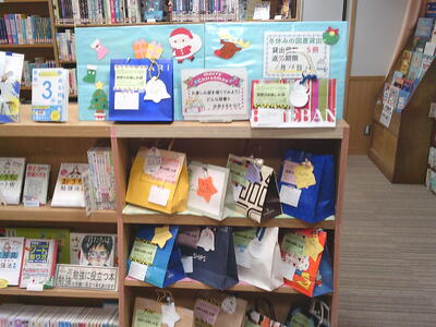 学校図書館のイベント 投稿: ホームページ管理者 (12:52) 図書委員さんが選んだ2冊の本が紙袋に入っている「本のお楽しみ袋」のイベントを開催しています。 また、冬休みは、1人5冊まで貸出可能(返却期限:1月16日まで)ですので、年末年始のゆっくりとした時間を有意義に過ごすためにも本を読む時間を作ってくださいね。