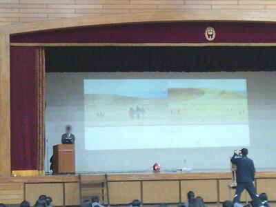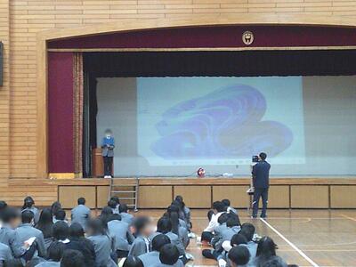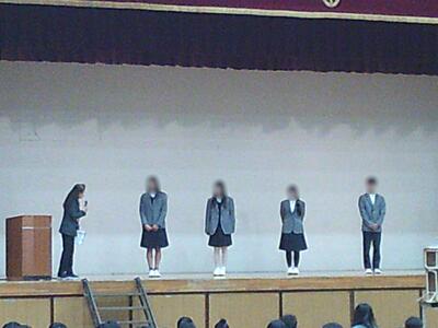 終業式の後に、英語科企画の『英語プレゼンテーション大会』が行われました。各学年から1年生1名、2年生2名、3年生2名の計5名の代表者が選出され全校生徒の前で披露しました。