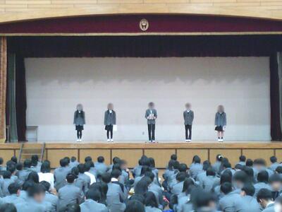 生徒会からは、「あいさつ運動」と「3学期のノーチャイムデーの取組み」についてお知らせがありました。