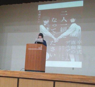 本校のビブリオバトルは、3分間で本の紹介、2分間の質疑応答の結果、一番読みたいと思わせた本に全校生徒が投票します。投票結果は今週金曜日の昼食の放送で発表されます。