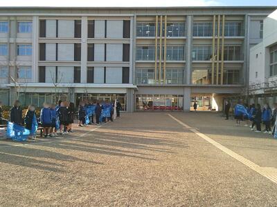 2/2~ 生徒会あいさつ運動週間 投稿: ホームページ管理者 (11:06) 今週は、生徒会のあいさつ運動週間になります。 残念ながら、2年生がインフルエンザによる学年閉鎖(2/5~)、1年4組は学級閉鎖(2/6~)になってしまったので、水曜日からは、参加人数が減ってしまいましたが、各委員会の生徒が普段より少し早く登校し、さわやかにあいさつ運動をしてくれています。