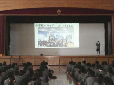 先日行ったビブリオバトルの表彰、生徒会から「小6ガイダンスの報告」と「SEGsアンケートの協力のお礼」がありました。